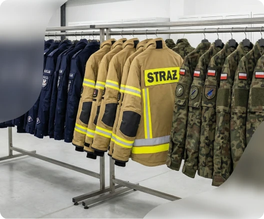 Rozumiemy specyfikę pracy w mundurze. Intensywne użytkowanie, zmienne warunki atmosferyczne i stres wymagają dedykowanych procesów prania. Nasza technologia łączy bezwzględną skuteczność usuwania zabrudzeń z ochroną tkanin mundurowych i ich właściwości.